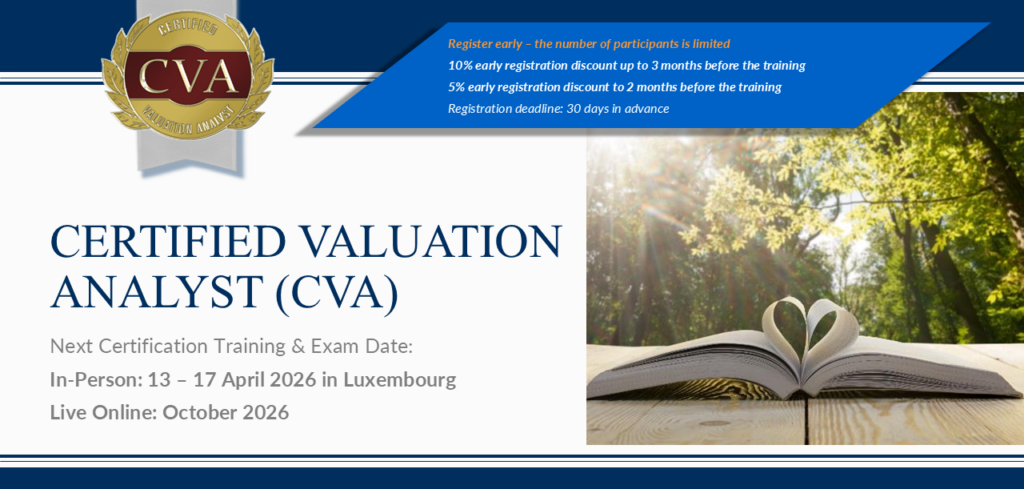 - Next EACVA / LVPA Business Valuation 5-day Certification Program is scheduled from 13 – 17 April 2026 in Live in Person in Luxembourg