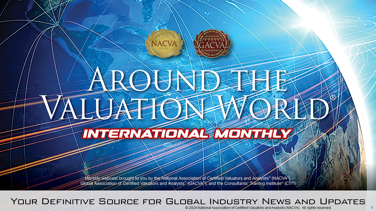 The live monthly webcast Around the Valuation World® International is an exclusive member benefit produced by the GACVA Advisory Council. It features business valuation experts providing technical guidance and insight to international valuation issues.